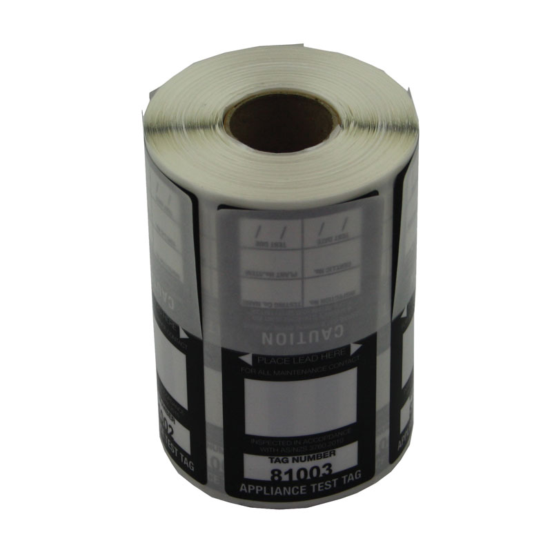 Wavecom Generic Laminated Appliance Test Tags These laminated generic tags come in various colours and in rolls of 250. Each tag measures 100mm x 40mm and is made of polyester materials designed to withstand most extreme environments. All variable information can be hand written onto these tags using a permanent ink pen. Because these tags are on a roll they can be easily stored or carried around in your kit. They come in all the required colours, white, red, blue, green, black, orange, yellow, burgundy or black. If you own a standalone 104mm thermal transfer label printer you can use it (with the appropriate ribbon) to personalize the tag with your name and serial test number.